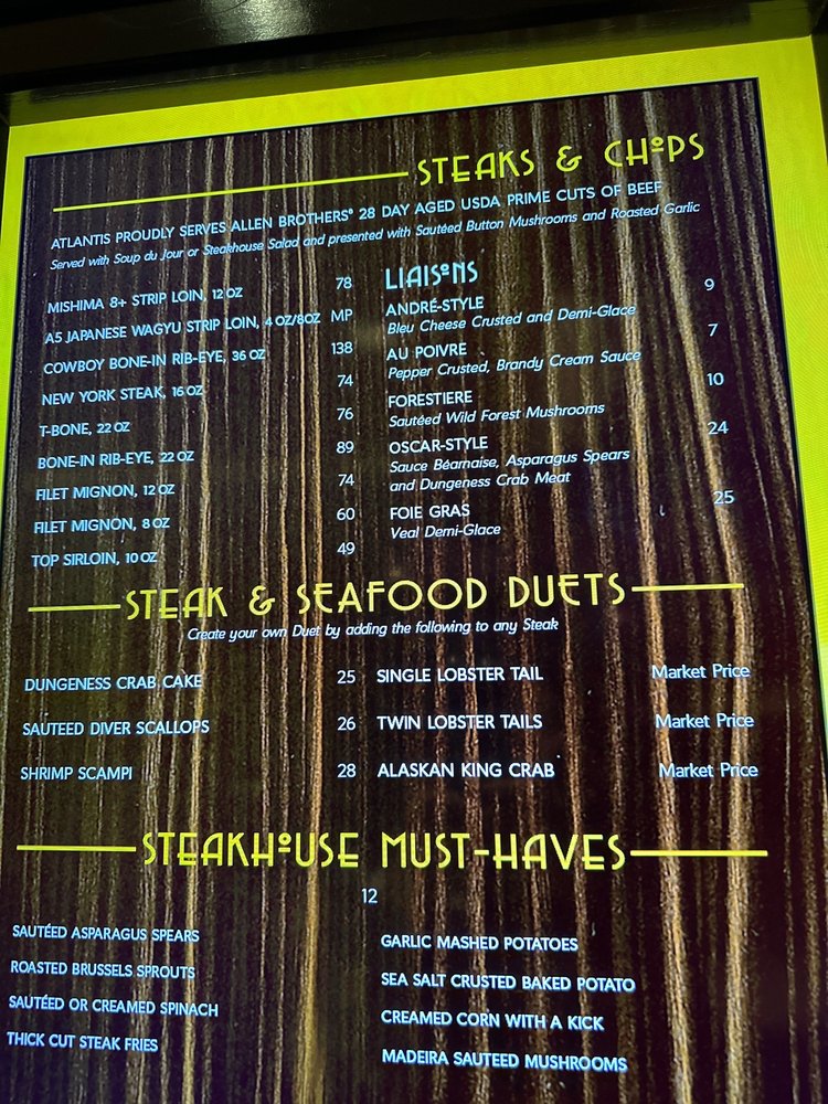 Introducing Atlantis Steakhouse, a hidden gem in Reno that offers a classy and upscale dining experience. With a diverse menu that includes vegan options, the restaurant is perfect for a romantic dinner or a group gathering. Customers rave about the impeccable service and the tableside cooking experience, making dining here not just a meal but a show. From the bacon-wrapped scallops to the savory Steak Diane cooked right in front of you, every dish is a work of art. The elegant ambiance and personalized recommendations from the wait staff add to the overall pampering experience. Atlantis Steakhouse truly raises the bar on food, drink, and service, making it a must-visit for those seeking excellence in dining.